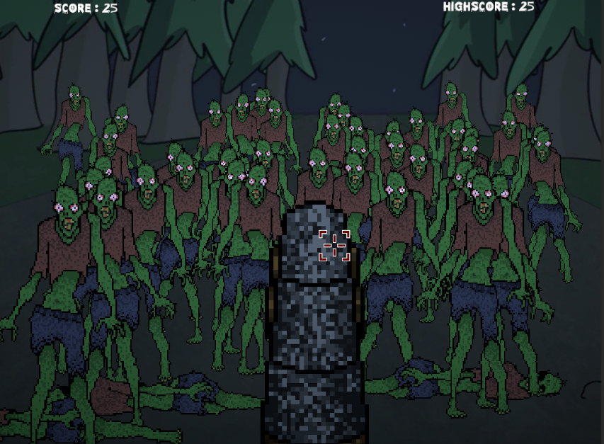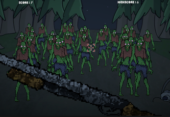 A point and click shooter game, where you shoot zombies, zombies and more zombies. You work to keep the undead away from you in a forest, while managing resources outside of the forest.